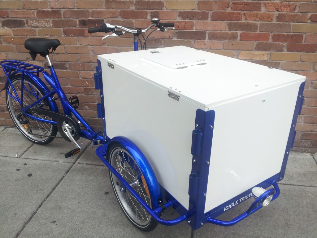 The Icicle Tricycles Standard Cargo Bike! Excellent as a start-up vehicle for your new or existing business. A great way to free yourself from the confines of brick and mortar!